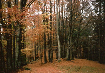 Am nächsten Morgen, nach dem erstaunlich guten Frühstück, werden wir mit dem Auto zurück zum Gasthaus in Plankenstein gebracht, von wo wir unsere Wanderung fortsetzen. Es regnet und es ist trüb. Nach kurzer Zeit verlieren wir die Markierung, das GPS findet längere Zeit keinen Satelliten und ist damit nicht einsatzbereit. Zuletzt klettern wir über Zäune, dann hören wir plötzlich einen LKW und wissen, dass dort unser Weg ist…leider asphaltiert. Nach kurzer Zeit finden wir wieder unsere Markierung und sind wieder richtig unterwegs. Wir gehen mit unseren roten Regenjacken lange dahin, bergauf und dann wieder ein wenig bergab. Bisher geht es ziemlich gemütlich auf eine Anhöhe. In Rainbach zweigt unser Weg vom 05er ab. Inzwischen hat der Regen nachgelassen und wir wandern hinunter nach Scheibbs, welches in einem Tal liegt. In einer Konditorei machen wir eine halbe Stunde Mittagspause. Wir verpacken unsere Regenjacken und gehen wieder bergauf, nicht einige Meter wie im Buch beschrieben, sondern von 300m auf fast 900 Höhenmeter, und teilweise auf steilen, aber gut markierten Pfaden. |